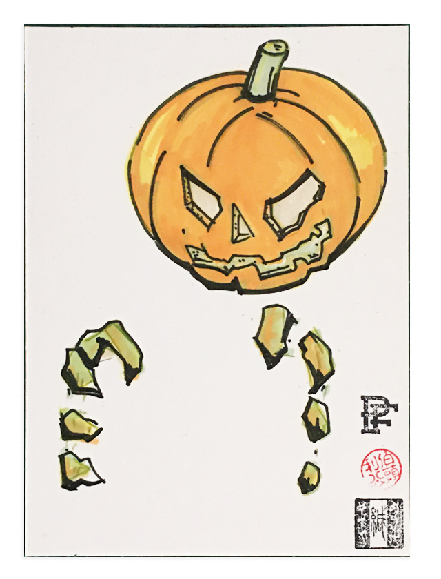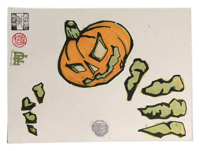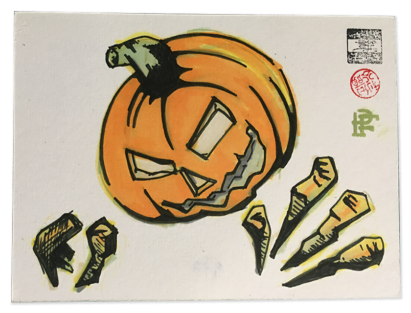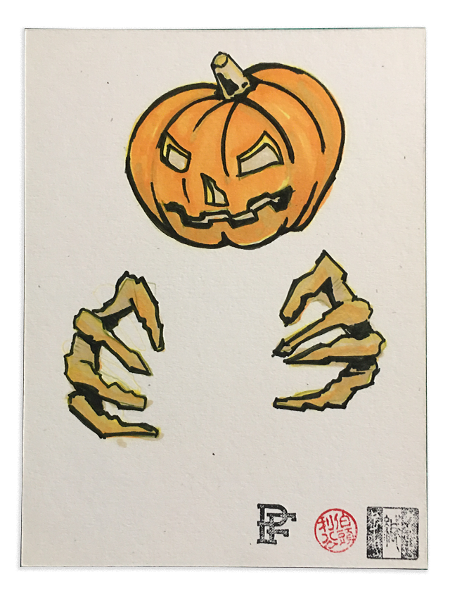 Halloween Postcards depicting a spooky jack o' lantern reaching out from the page.